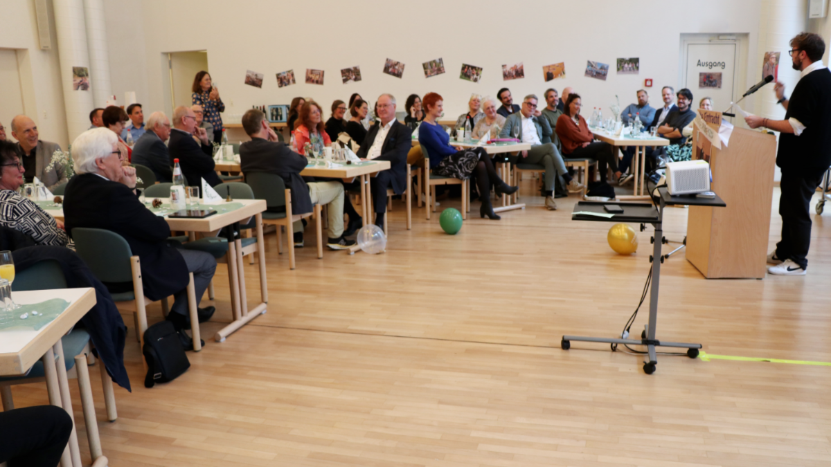 Das Team der Arbeitsstelle sorgte mit kreativen Beiträgen und humorvollen Momenten – etwa der augenzwinkernden Beschriftung des Rednerpults – für viele Lacher und herzliche Atmosphäre. Natürlich durften auch die zahlreichen Geschenke zum „Unruhestand“ nicht fehlen.
